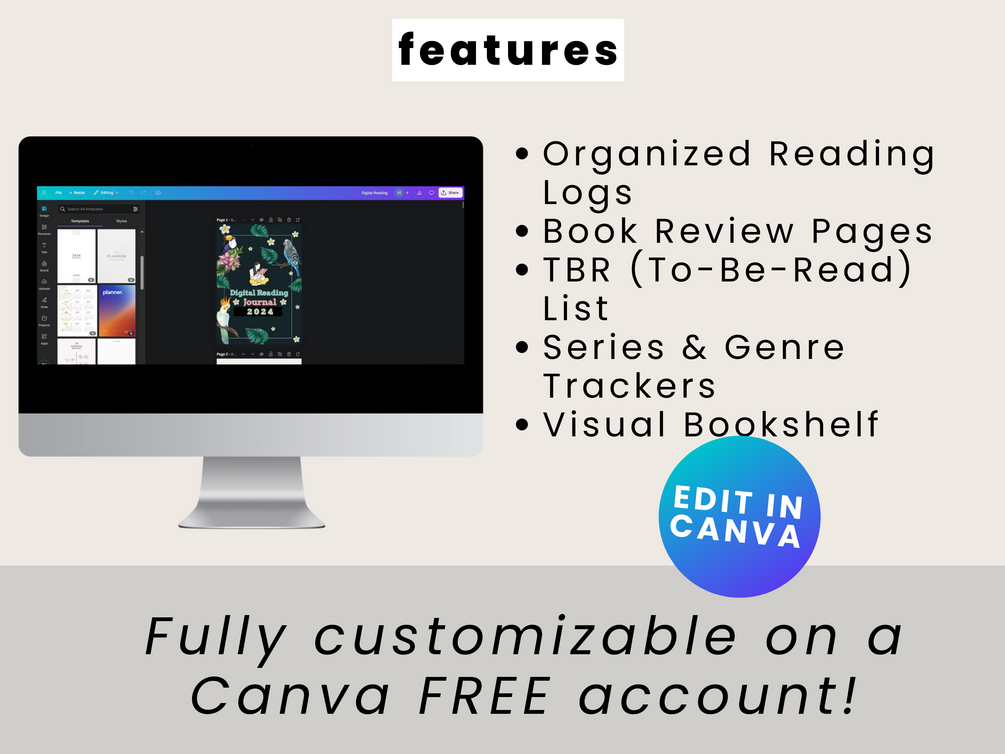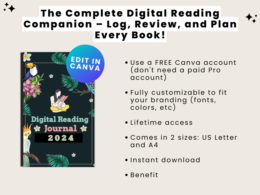 Transform Your Reading Experience with the Digital Reading Journal! Track your books, organize reviews, and manage your TBR list—all in one beautifully designed digital planner for GoodNotes and iPad. Plus, it's fully adjustable in Canva so you can personalize it to fit your unique reading style.